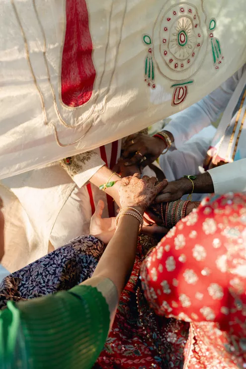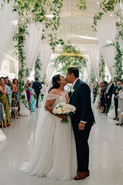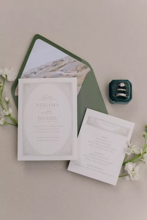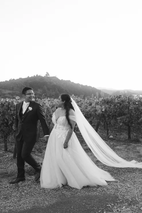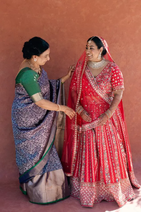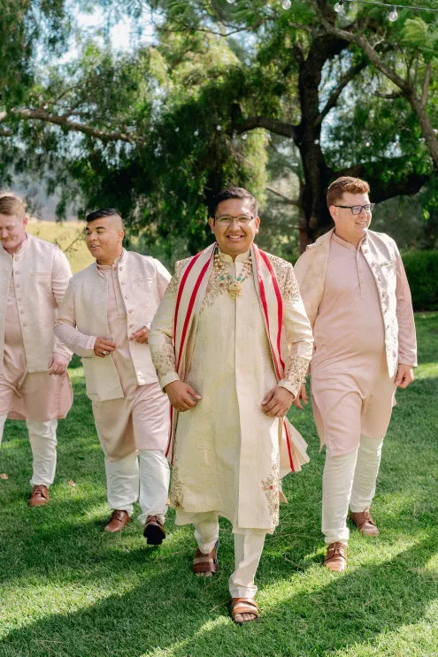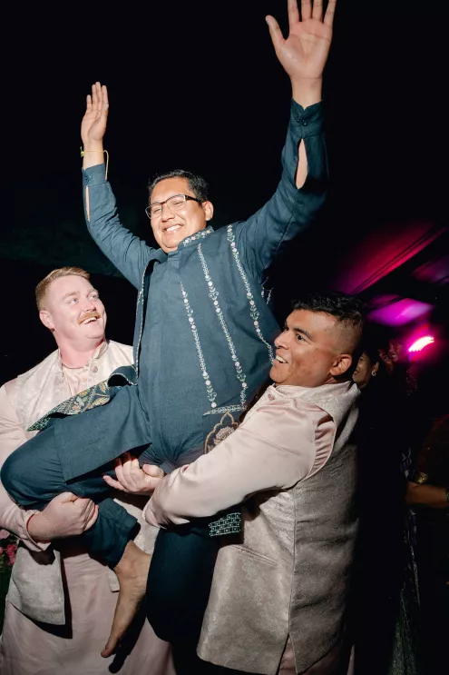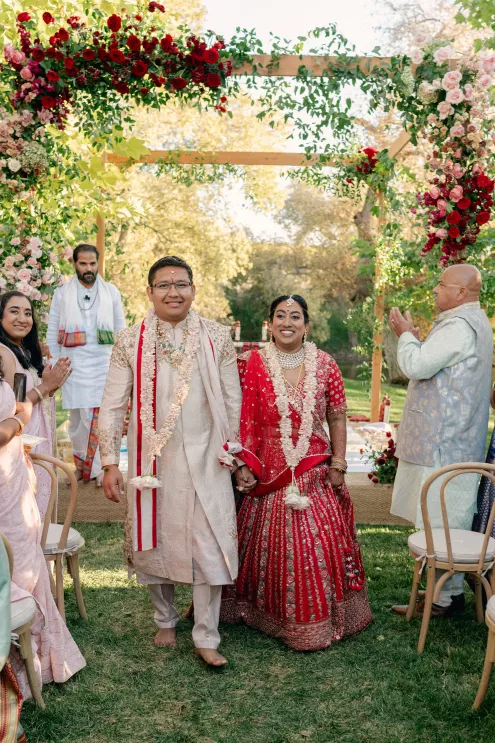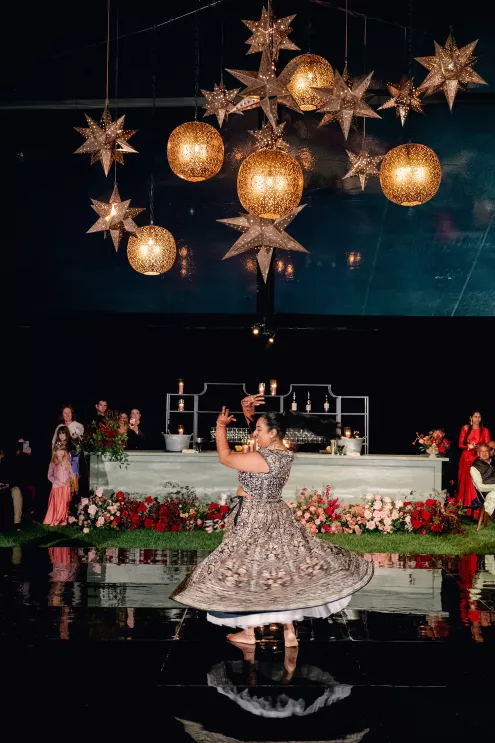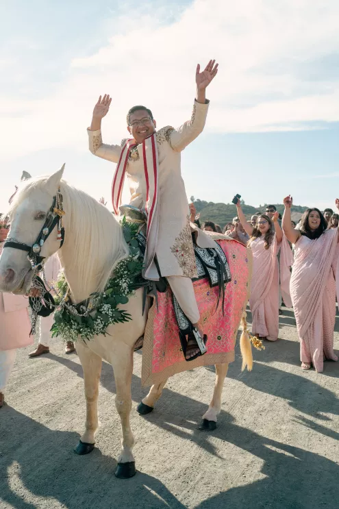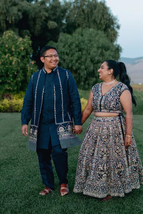 Neelima Mandava and Daniel Villarreal’s two-day wedding was an enchanting celebration of two cultures and intertwining heritage. The couple met during their first day of orientation at college in San Luis Obispo, and their immediate friendship was so powerful, they knew it would last a lifetime. The process of planning their wedding took several years because both Neelima and Daniel wanted it to perfectly incorporate their respective cultures. They chose Greengate Ranch & Vineyard for the venue, a space that perfectly connected the indoors and the outdoors for maximum flexibility. The first day of celebrations kicked off with the baraat, an Indian wedding procession honoring Neelima’s heritage, followed by a series of timeless rituals led by the family priest, including showering the couple with rice for good fortune. A vibrant reception took place next, with classic Indian cuisine, mesmerizing dances and performances during the sangeet celebration. On the second day, the celebration shifted to a traditional American ceremony in Greengate Ranch’s indoor stables space, with elements borrowed from Daniel’s Mexican heritage. The guests were then treated to an outdoor cocktail hour at sunset while the indoor space was rapidly transformed to accommodate a candlelit dinner, mariachi band and dance floor in the evening. The entire weekend made for a perfect blending of cultures as the couple celebrated their love for each other, friends and family.