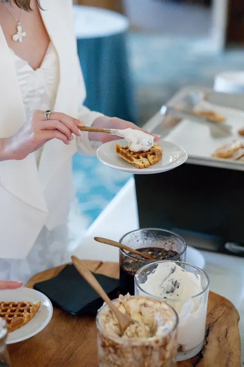 Sweet treats were a major highlight, with miniature confections from LILA Cake Shop and a statement cake by Laura Marie Cakes. Aly Rose Beauty provided on-site hair and makeup for the California Wedding Day team, while Justin Critz Photography and Titus & Jo captured every elegant detail. Yours Socially documented all the fun behind-the-scenes content of the morning, sharing the celebration as it unfolded.