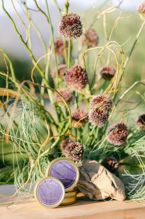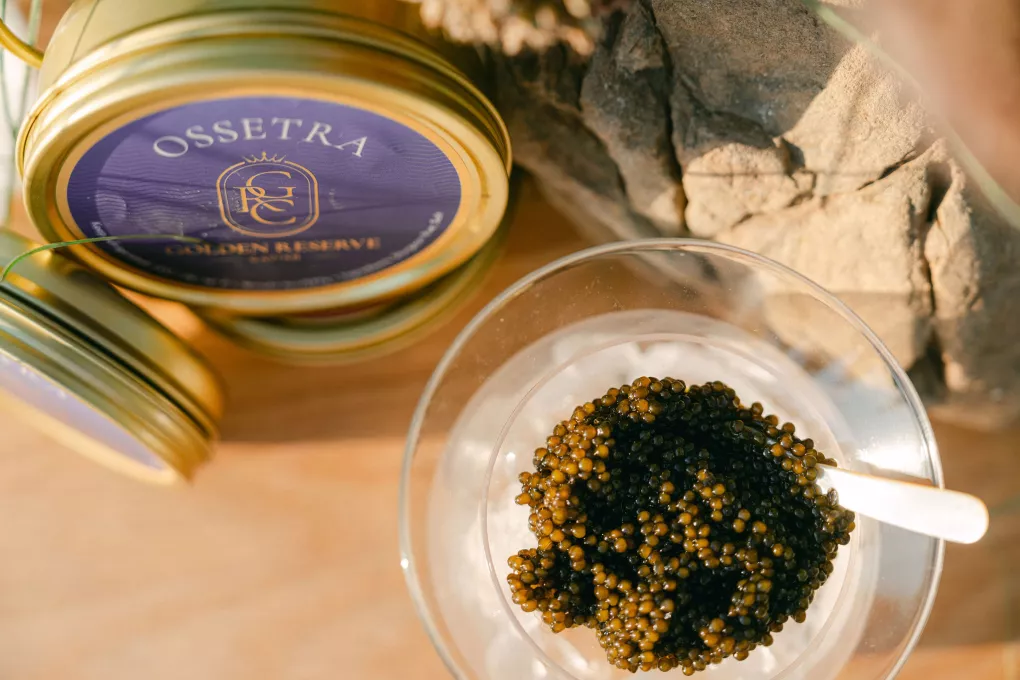 For a truly luxurious guest experience, a champagne and caviar bar is an exceptional start to the wedding. Golden Reserve Caviar’s tins of Ossetra are presented in crystal goblets with mother-of-pearl spoons.