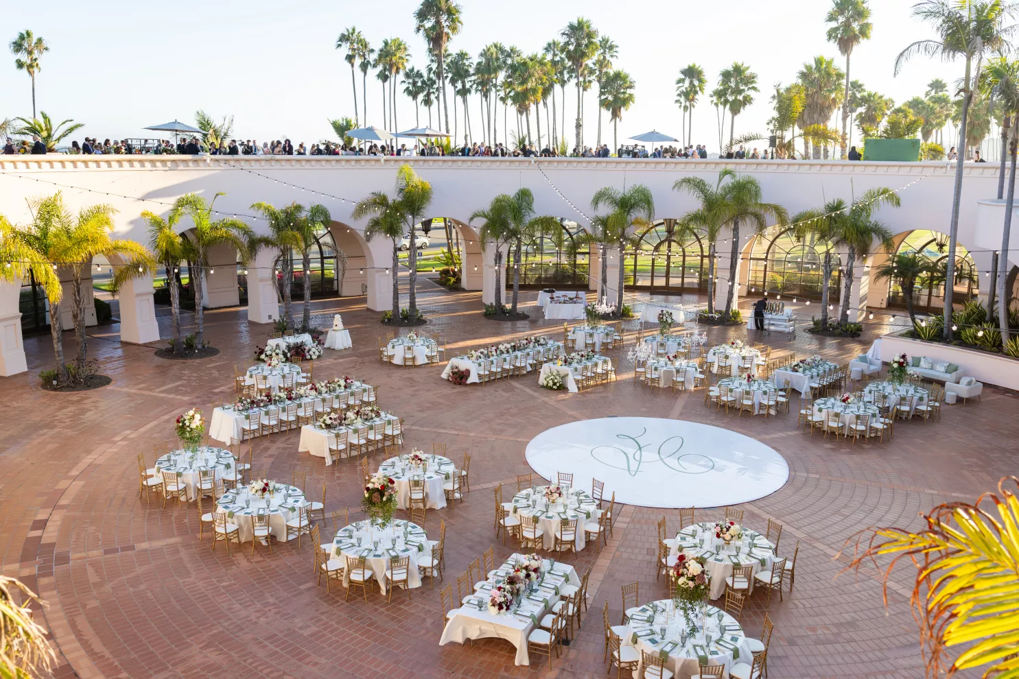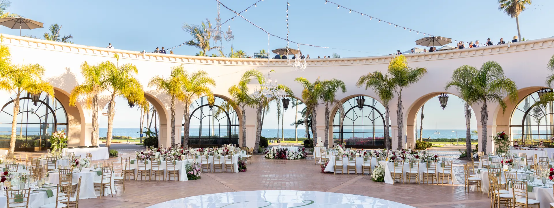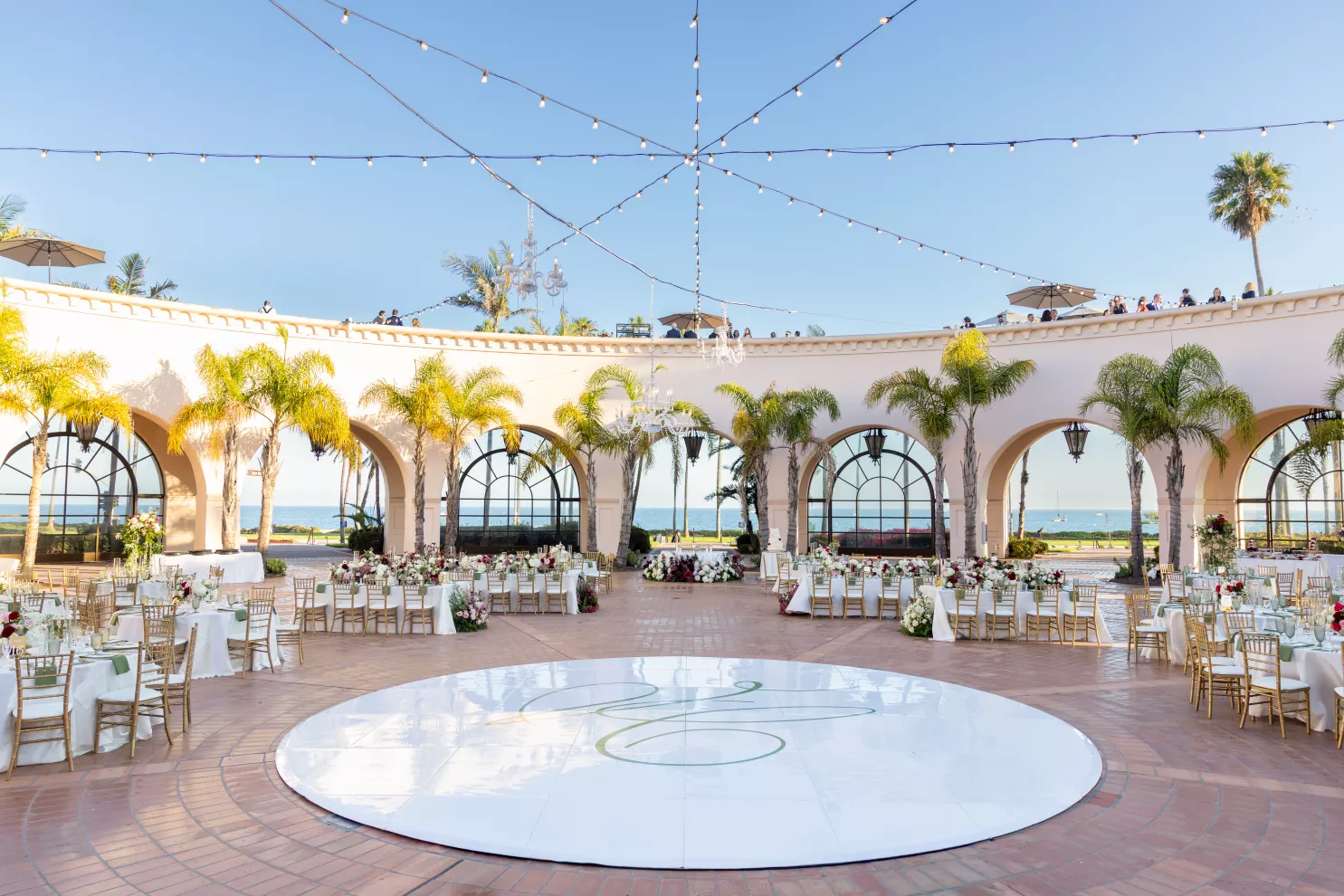 Welcomed by custom cocktails, guests enjoyed a scenic seafront sunset from the second floor of the hotel’s rotunda as the bridal party gathered for their grand entrance. An energetic Egyptian zaffa, complete with drumming and dancing, honored the bride’s heritage and kicked off a boisterous evening under chandeliers and the stars.