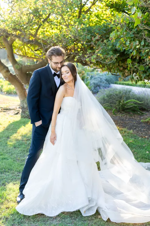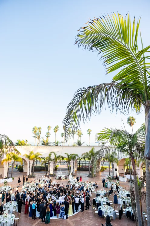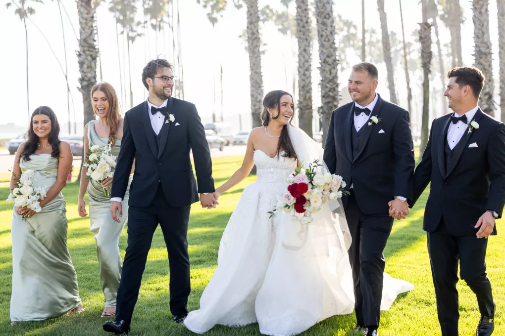 For their destination wedding in California, the adventurous couple dreamed of luxurious beachside elegance. A refined ceremony at the First United Methodist Church, followed by a lively reception at the Hilton Santa Barbara Beachfront Resort, incorporated classic tradition and coastal style.