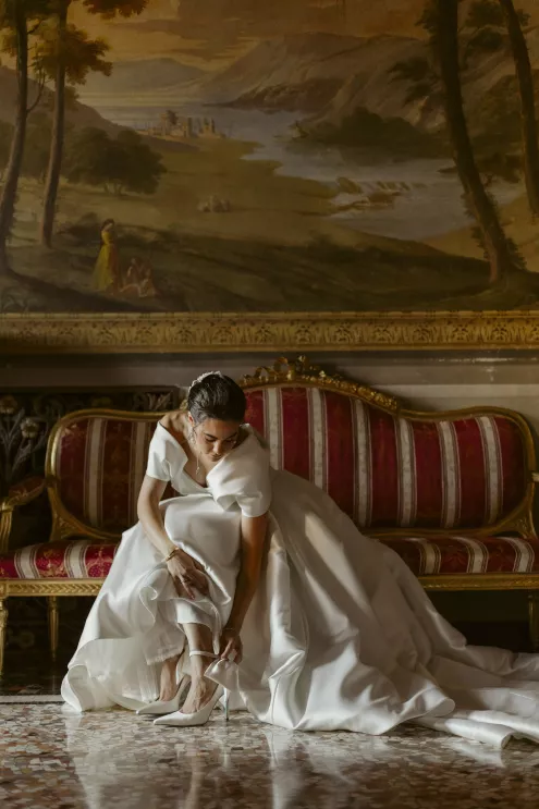 This year, love is at the heart of everything she does. This past September, Valentina tied the knot with orchestra conductor Pietro Mazzetti at her family’s storybook Tuscan estate. Naturally, she’s put her artistry center stage and designed custom pairs for her bridal party, plus three pairs for herself (because what bride can settle for just one?).
