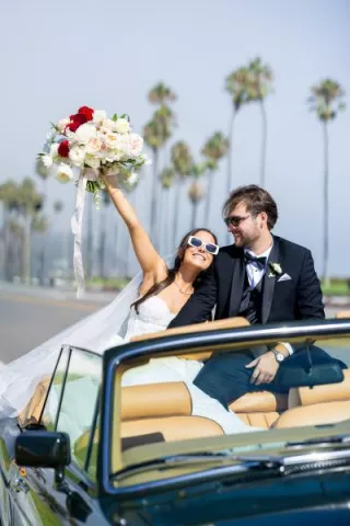 Jaime Lang and Jon Morra tied the knot in May 2022 at the scenic Houdini Estate in Los Angeles in a wedding filled with ethereal elegance. The pair initially met online and connected over their love of soccer. Over time, Jaime not only fell in love with Jon, but also with his kids Anna and Will. They planned to make things official in May 2020, but were forced to adjust their matrimonial plans because of the pandemic. This obstacle was truly a blessing in disguise, as Jamie and Jon welcomed a baby boy just in time for their 2022 wedding. The rich history and beautiful architecture of this venue made it an ideal location for their spring nuptials, featuring a plethora of flora and an expansive, tranquil locale. Jamie and Jon took advantage of the lush grounds of the estate with an all-outdoor garden celebration filled with family and friends. They will cherish all the sweet moments they experienced during this heartwarming event that signified their families becoming one. Planned by 3 Little Birds Event Planning, the color palette featured a stunning combination of various shades of blue, white and gold that perfectly complemented the greens and florals of the garden. Florals by Love Note Events and catering by Spotted Hen worked together to create an elegant and classic ambiance for the happy couple and their guests to enjoy. A blush and cream rose-filled bouquet added a soft touch to our bride’s look that paired with the lace detailing of the bride’s dress. A cake adorned with cream roses was a welcome echo of Jamie’s bouquet. One catering highlight was their delicious cocktails in sparkling glassware which quenched thirst through the evening for guests. Guests enjoyed their food under a dazzling array of warm lights strung above white and gold table settings among and outdoor haven, captured in spectacular photos. This special day was steeped in romance and was an unforgettable start to the newlywed life for Jaime and Jon.