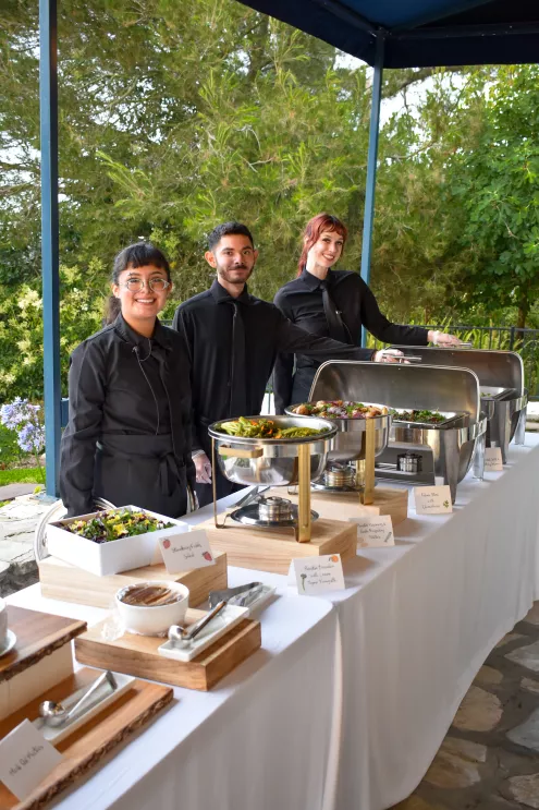 Founded and run day to day by a Michelin star, Le Cordon Bleu trained Chef; our team thrives on exceeding expectations. We’re South Bay local, with our CEO and founder Meg Walker from Manhattan Beach and headquarters in Torrance, and the ability to cater events across Southern California via our fleet of wrapped catering vans and designated off-site staff. Not only do we bring top notch cuisine, we bring all of the staff it takes to pull it off. We employ every server, bartender, chef and staff captain that works our events. Having those employees in house allows us to train them to our service standards.