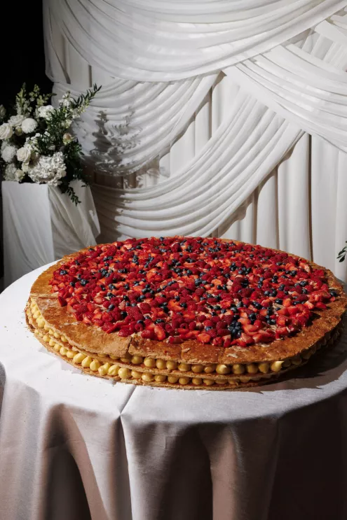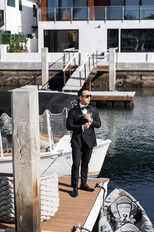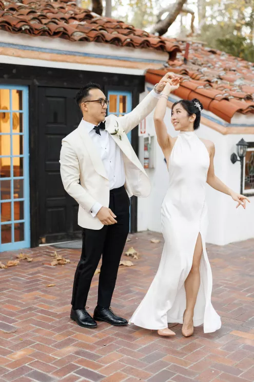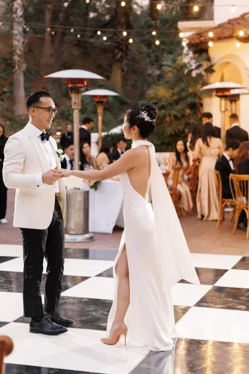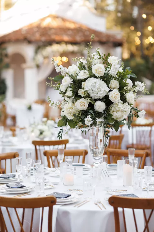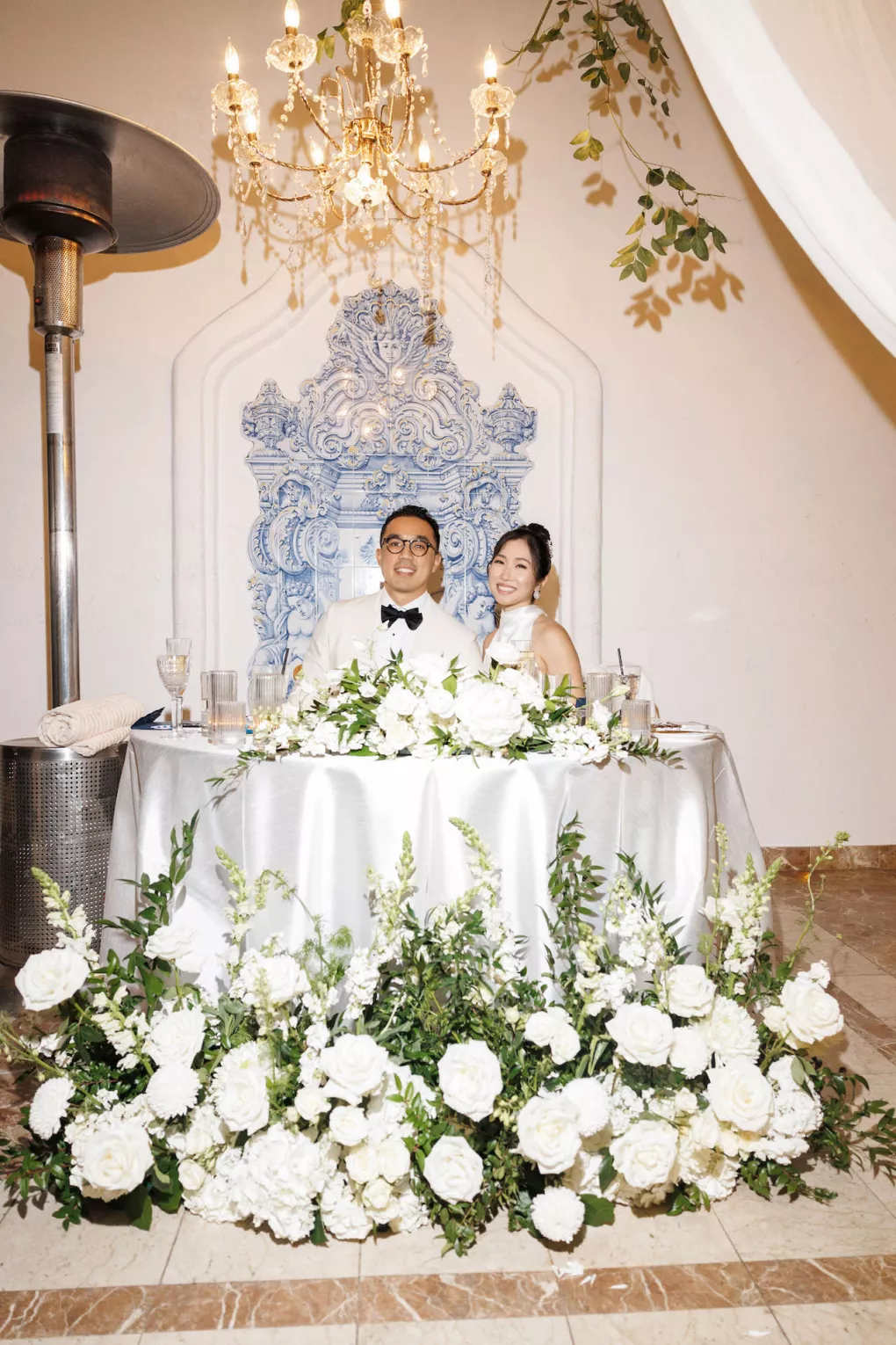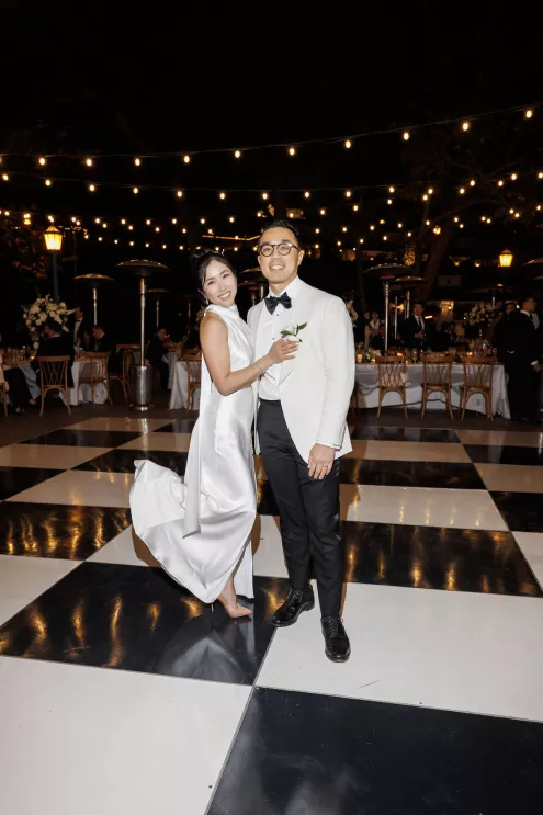 The design reflected the couple's heritage, creating a meaningful experience throughout. A refined blue accent palette ran through the decor alongside specialty tabletop rentals and custom menus from Korea. When guests opened those menus, they found a handcrafted scarf inside featuring an illustration of the venue. A custom letter written to each individual guest ensured no one in the room felt like a number. Live sketch artists captured intimate moments throughout the day and a bossa nova band played through cocktail hour and dinner, a nod to the music that soundtracked the early days of their relationship during the COVID era.