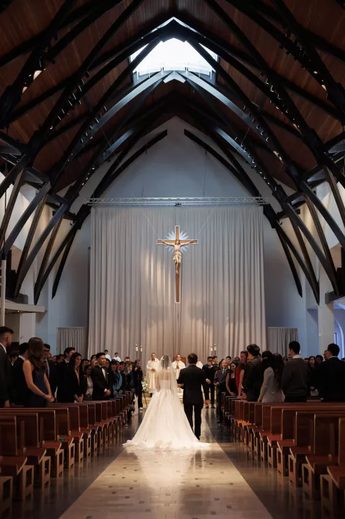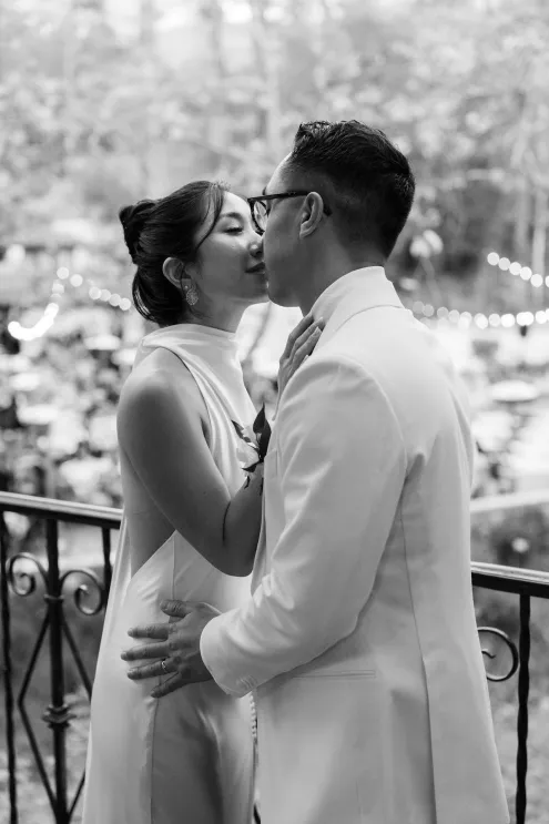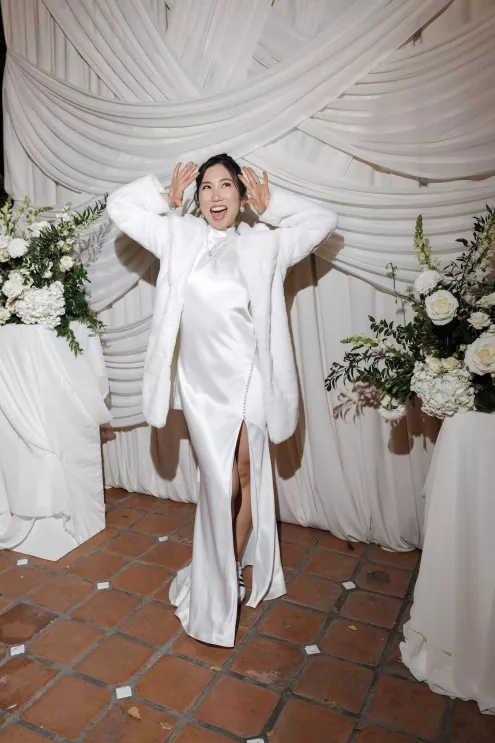The celebration wove together three distinct cultural traditions: a Catholic ceremony, a Korean Paebaek ceremony and the Vietnamese Chào Bàn table-to-table tradition. Ashley changed outfits for each, donning a ceremony gown, traditional Korean attire for the Paebaek and a Vietnamese ensemble for the Chào Bàn.