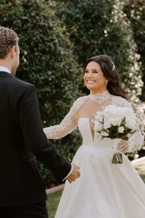 When bridal boutique owner Taylor married Tim at her family’s newly opened Ever After Ranch in Simi Valley, the day unfolded like the ultimate fashion editorial. With a discerning eye honed from years of guiding brides through their own dress journeys, Taylor approached her wedding style as a carefully curated collection—three distinct gowns, each narrating a different chapter of her love story.