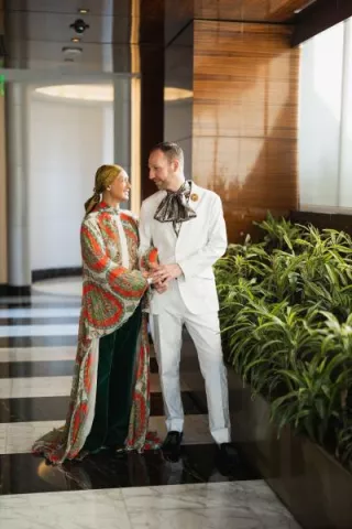 This dramatic installation at a Kate Spade-inspired wedding at La Jolla’s Darlington House told Richelle and Tom Regan’s story. Spanning 12 feet wide by 8 feet high, the wall showcased items Balliet nabbed from the couple, including vinyl records and the brides shoes. It quickly became the focal point for guests--sparking conversation and plenty of Instagram moments.
