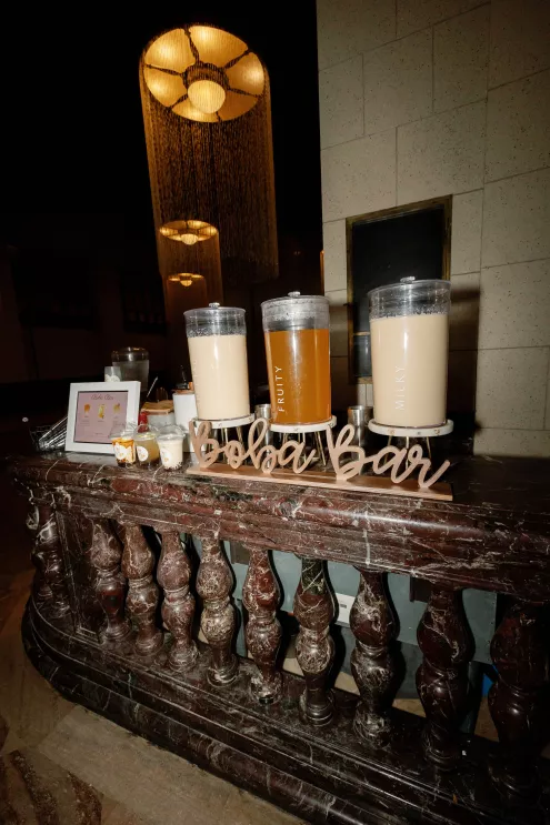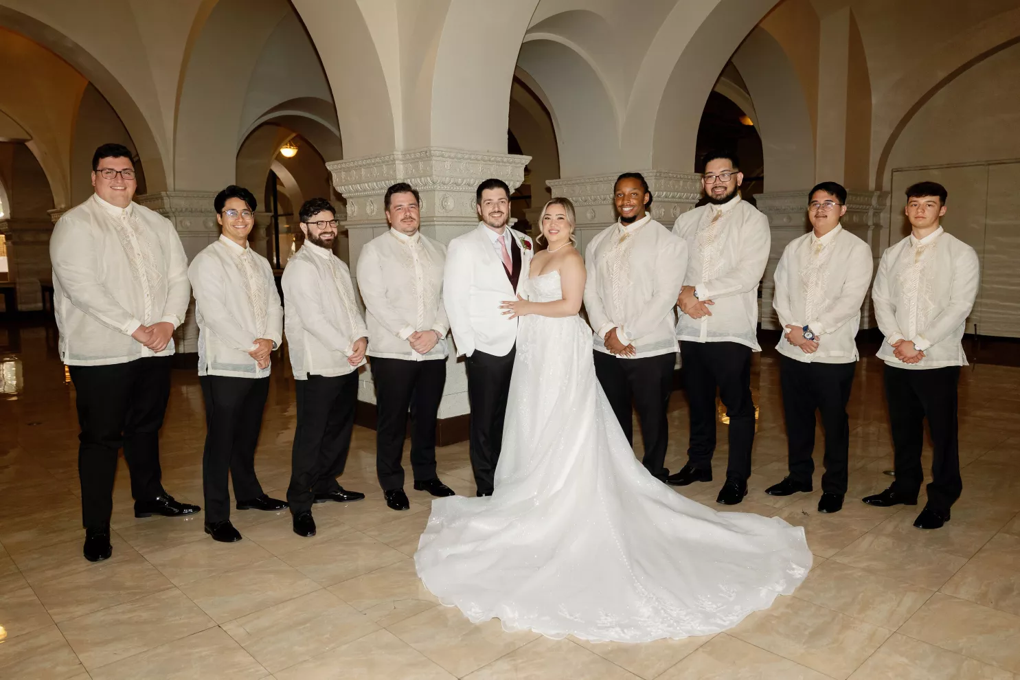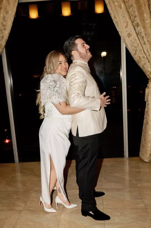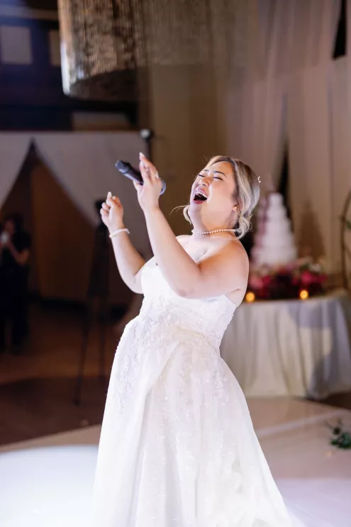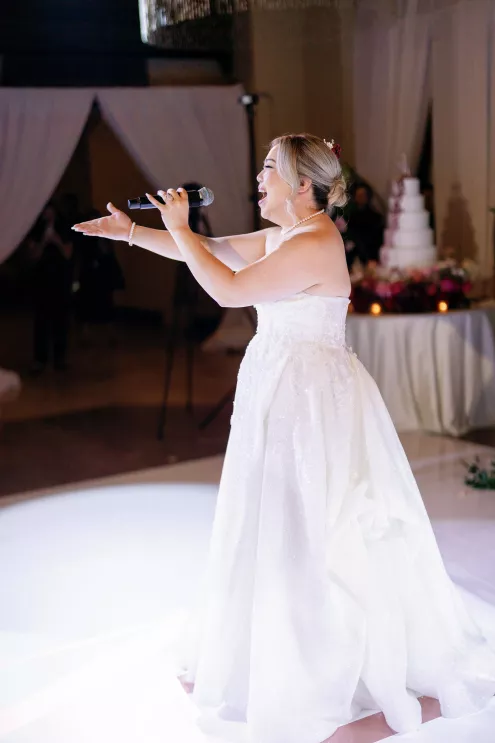 Cultural moments took center stage throughout the evening. The wedding party wore handcrafted barongs, and a jubilant lechon procession swept across the dance floor to roaring applause. Later, the bride changed into a traditional Filipiniana gown and delivered a showstopping performance of I Will Always Love You, bringing guests to their feet and closing the night on a powerful, unforgettable note.