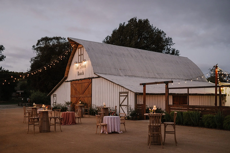 Imagine walking down a sun-dappled aisle flanked by tall grasses, or clinking glasses with your closest friends beneath a canopy of twinkling lights. Picture the meadow’s breeze carrying the scent of wildflowers as laughter drifts across the fields, or the golden California sunset reflecting off the barn’s wooden beams as music fills the air. At Tar Creek Ranch, each moment unfolds naturally, giving couples the freedom to create a wedding that is as personal as it is memorable.