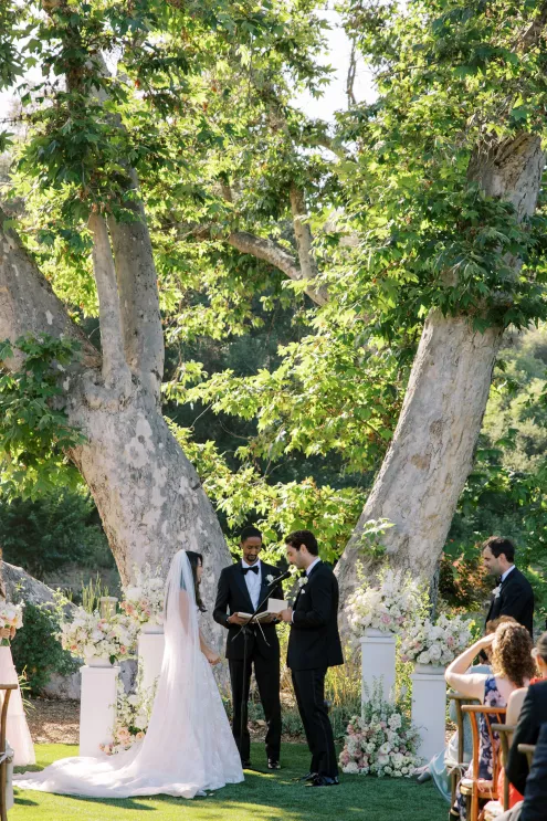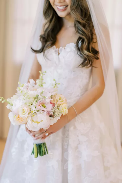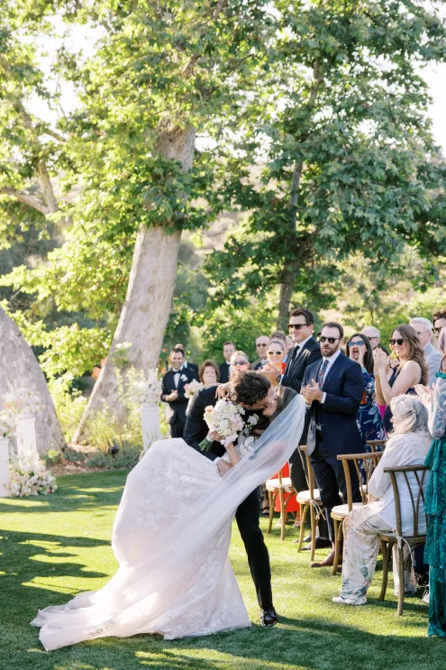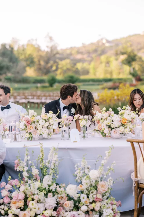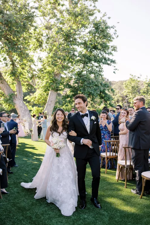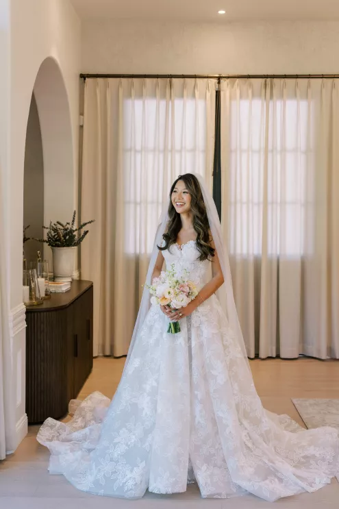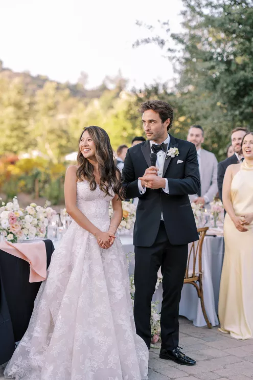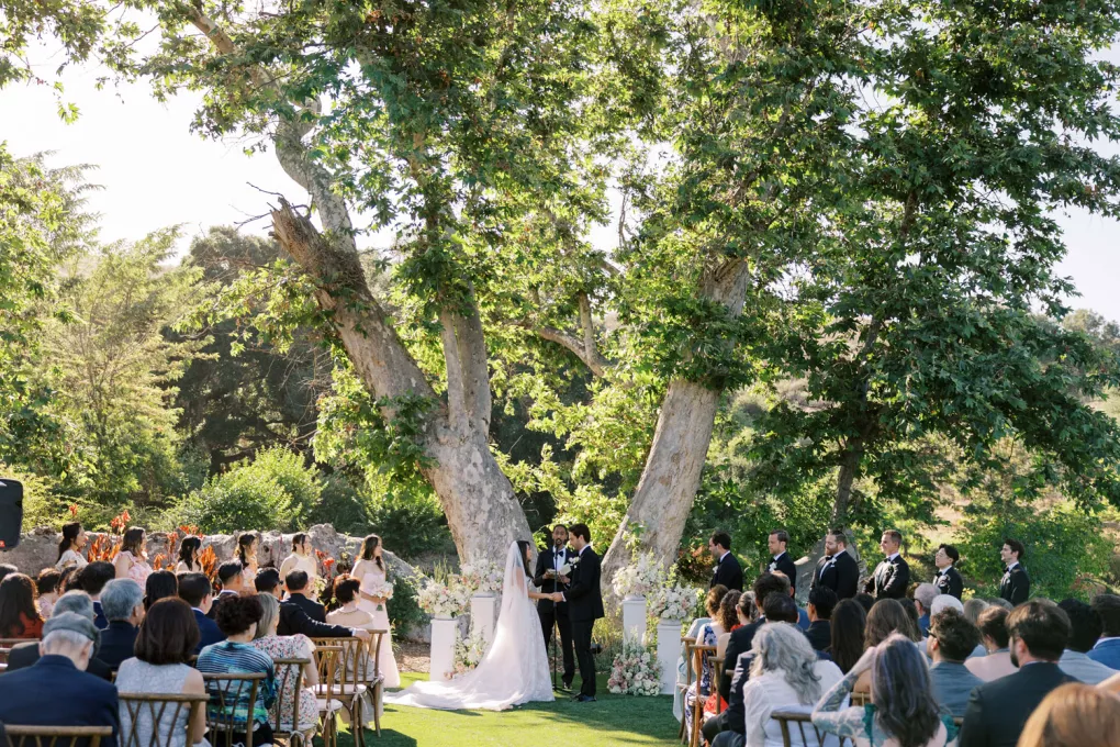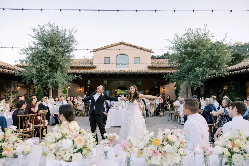When it came time to celebrate their wedding, the couple dreamed of transporting guests from San Diego to the Tuscan countryside for an evening both romantic and timeless. On a golden June afternoon, that vision took shape beneath towering sycamore trees by a quiet lake, where pastel blooms in butter yellow, blush, peach and white framed the ceremony space. The bride, radiant in a lace floral gown, walked down the aisle to meet her groom's gaze, a moment both recall as the most cherished of the day. Following vows, the couple honored Korean tradition by bowing to their parents and presenting flowers to their mothers before joyfully recessing hand in hand as husband and wife.