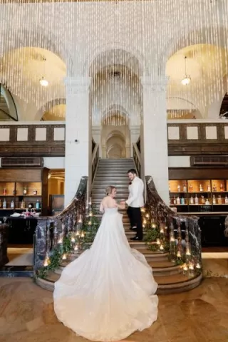 Filament lighting and an outdoor fireplace add a warm glow while the vaulted ceilings, exposed brick wall, reclaimed wood details, outdoor patio, open-shelved bar, window-filled urbanite studio loft and pocket garden provide options for intimate or expansive gatherings. There’s an elevated stage, new audio/visual system, parking for 1,000 and a well-appointed bridal suite.