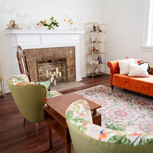 For quieter, more private moments, the Parlor offers exposed brick walls, warm textures, and a cozy atmosphere. It’s the perfect spot for bridal parties, intimate lounge areas, or a peaceful space before stepping into the grand ballroom. Two well-appointed getting-ready suites provide comfort and elegance for both bridal and groom parties, allowing each moment of preparation to feel special. At 440 Elm, even transitions are considered part of the day’s narrative, flowing seamlessly from ceremony to cocktail hour to reception.