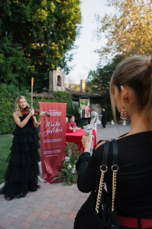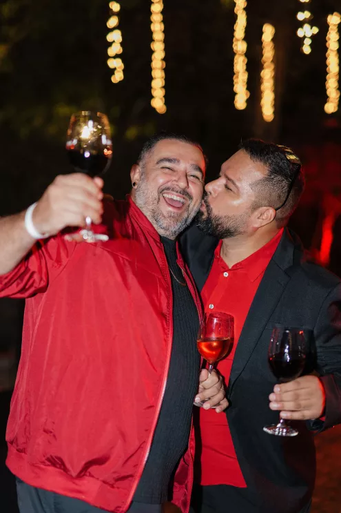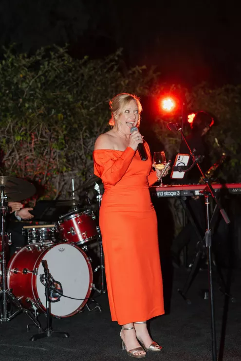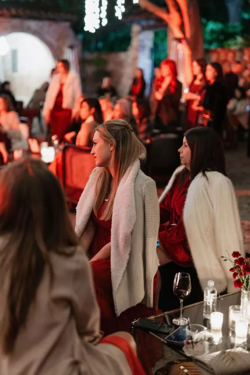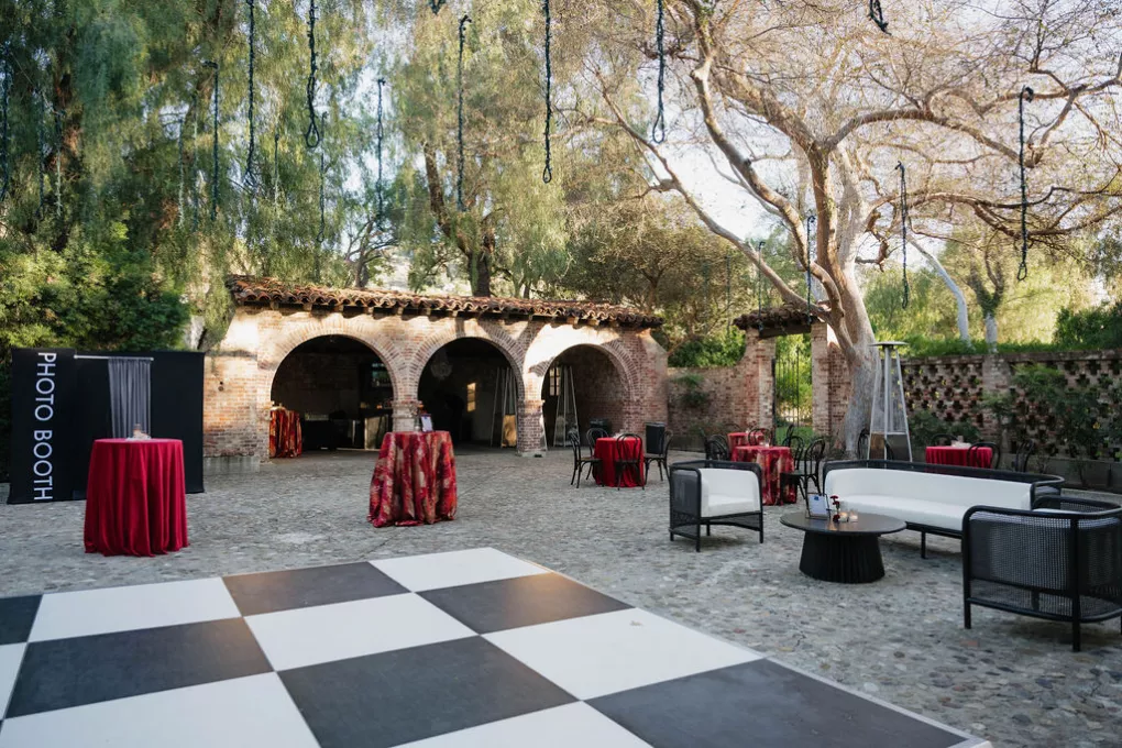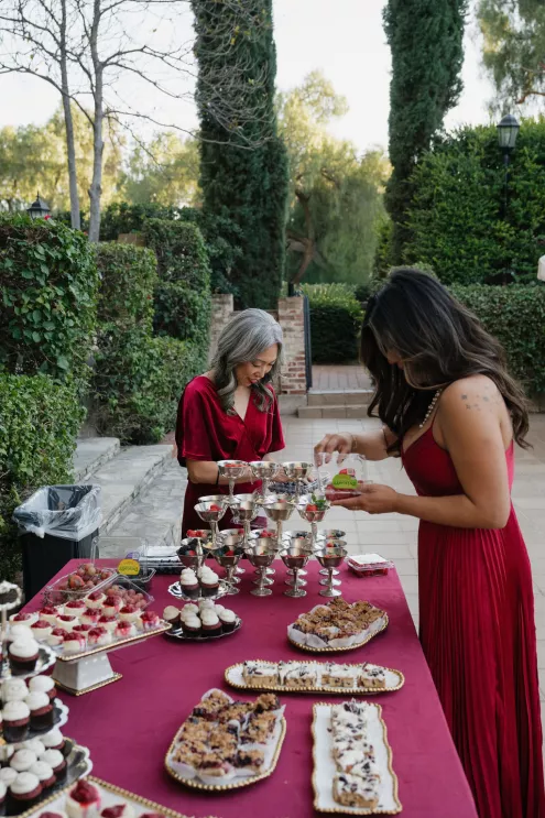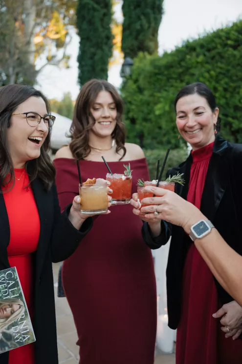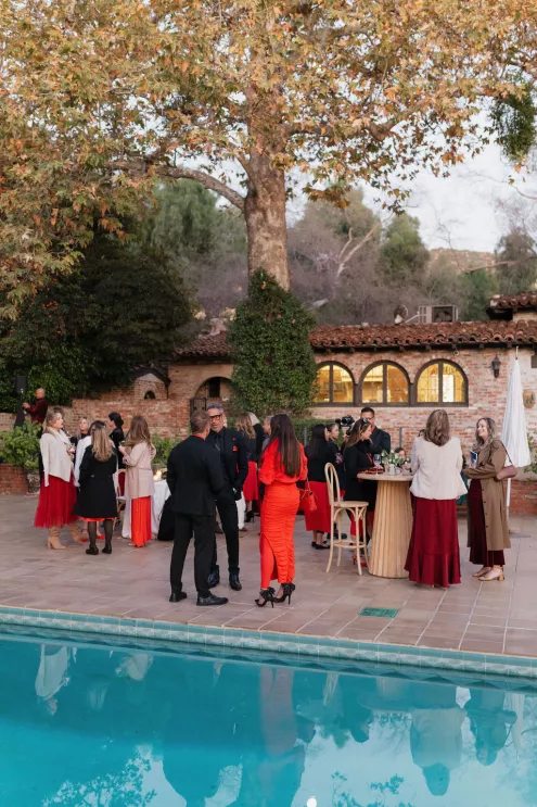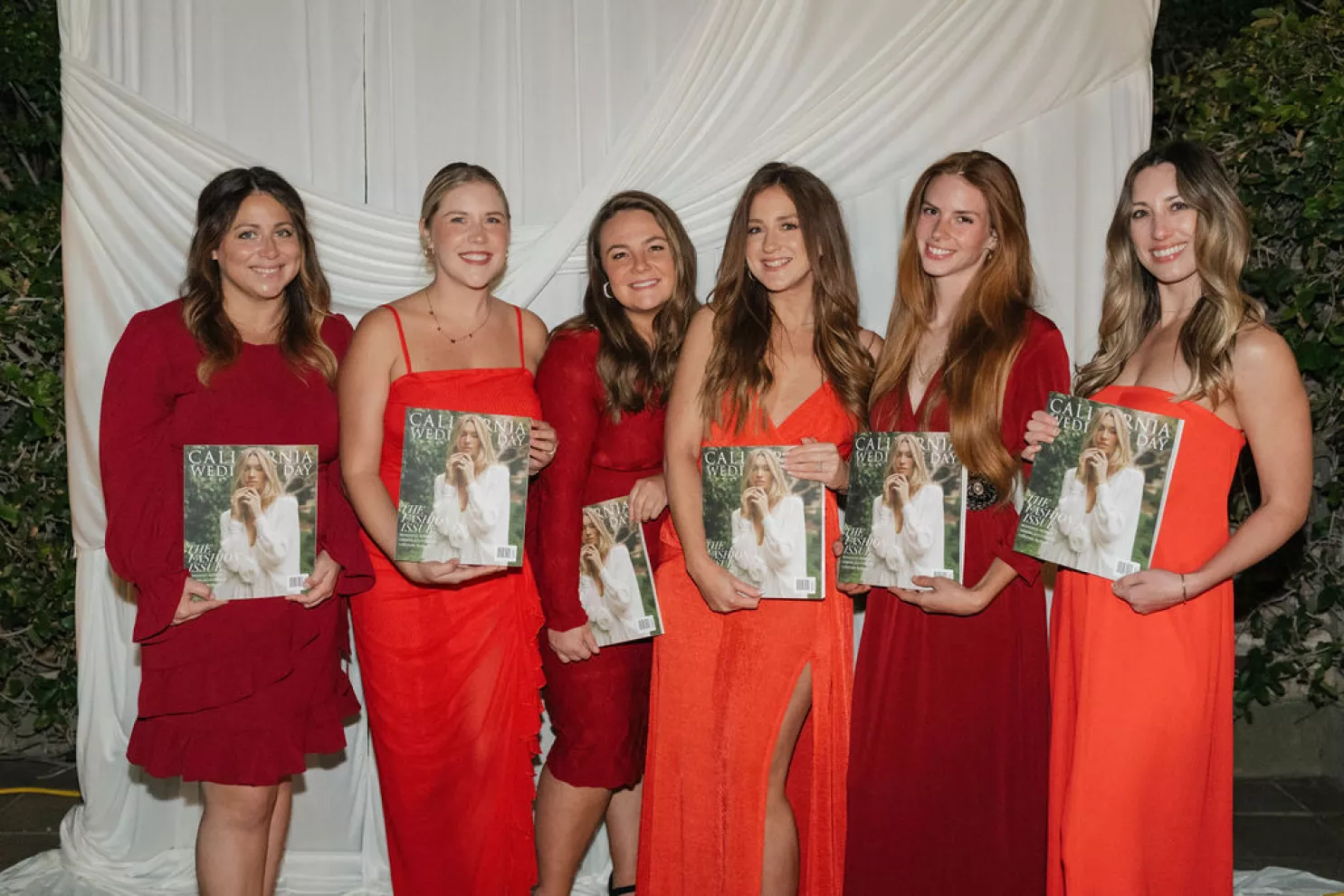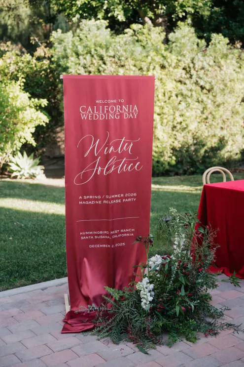 California Wedding Day gathered members of the California wedding community at the storied Hummingbird Nest Ranch for the second of two parties celebrating the launch of the Spring/Summer 2026 issue with a richly styled Winter Solstice aesthetic. Planned and designed by Events by Fran, the evening embraced a red-hued cocktail dress code that channeled old-Hollywood glamour against the ranch's European architecture and garden courtyards.