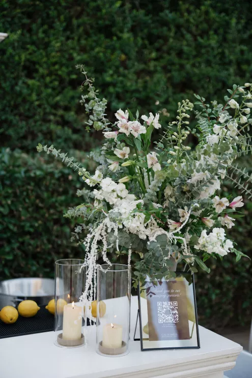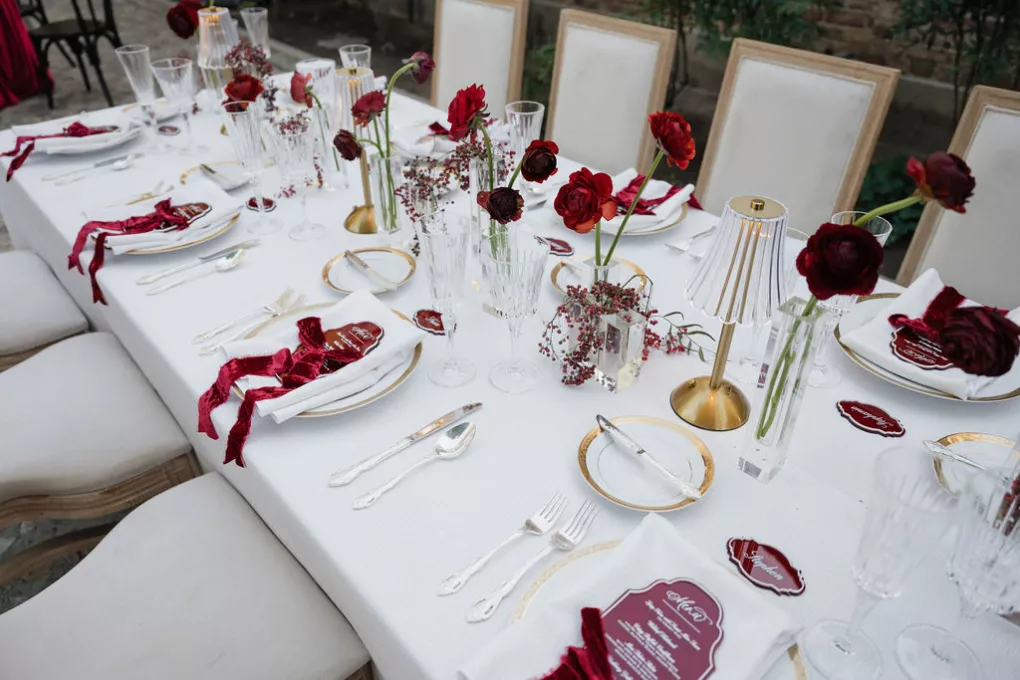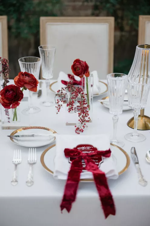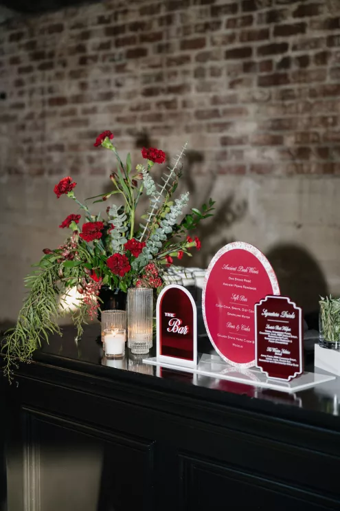 Layered tables dressed in BBJ La Tavola Linens and Premiere Party Rents furnishings set an elevated foundation for the celebration, while bold floral moments by Jaus of Vern added seasonal depth throughout the space. Custom invitation suites by Taylor Design Studio and event signage by The Kimi Collective welcomed guests with cohesive, editorial-forward design.
